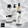 Enriquecido con un 1% de Glicoamina, esta crema sin aclarado de alta protección elimina el metal del cabello y lo protege de nuevos depósitos de partículas, para evitar la rotura y el cambio de color.